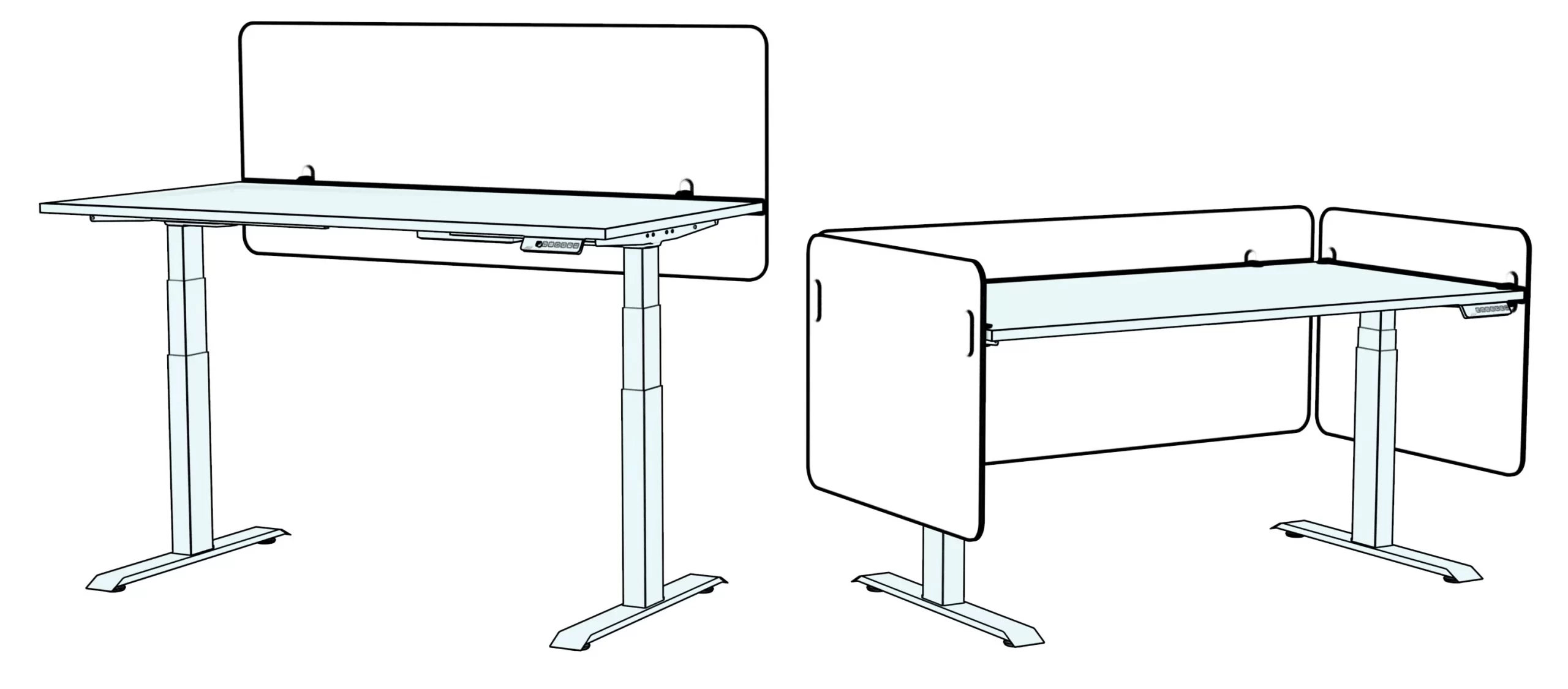 A quick 1 minute assembly allows the user to non destructively add the privacy panel onto any existing desk with its adjustable clamp design. Different sizing, shapes and configurations are available with a 1 week manufacturing lead time. Contact us for a quote.